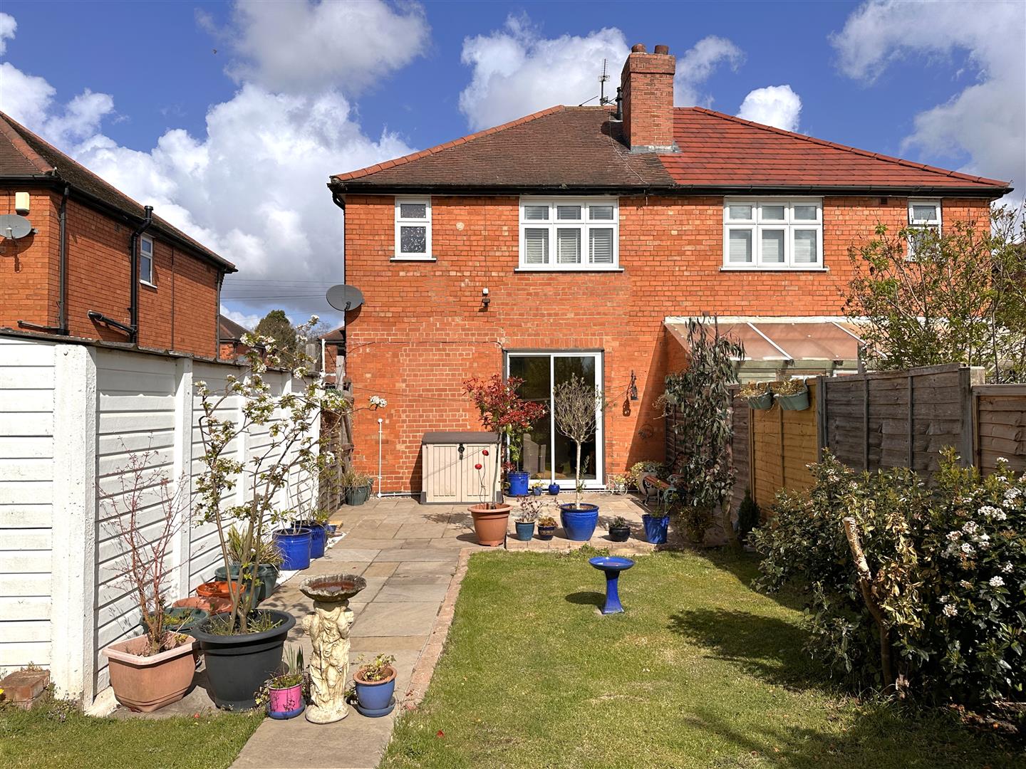 This attractive and traditional semi-detached home is pleasantly situated in a well-renowned location, close to the Town Centre. The front aspect is greeted with dropped kerb vehicular access onto a concrete driveway, with outside tap, leading down to a DETACHED GARAGE. The front garden is hard-landscaped and slate shingled with mature bushes and shrubs. There are fenced side boundaries and a part walled/ part wrought-iron fenced front boundary. A secure timber side gate at the bottom of the driveway opens onto a DELIGHTFUL INDIAN SANDSTONE SEATING AREA, with outside light and double external power socket. A perfect space for relaxing, unwinding and entertaining. Situated in the WELL-APPOINTED SOUTH-FACING REAR GARDEN. Predominantly laid tot lawn, with a central paved pathway and partial planted borders, hosting mature hedges/ shrubs. There are fully fenced side and rear boundaries. Ensuring a high-level of privacy, all year round, with an unspoiled outlook behind.