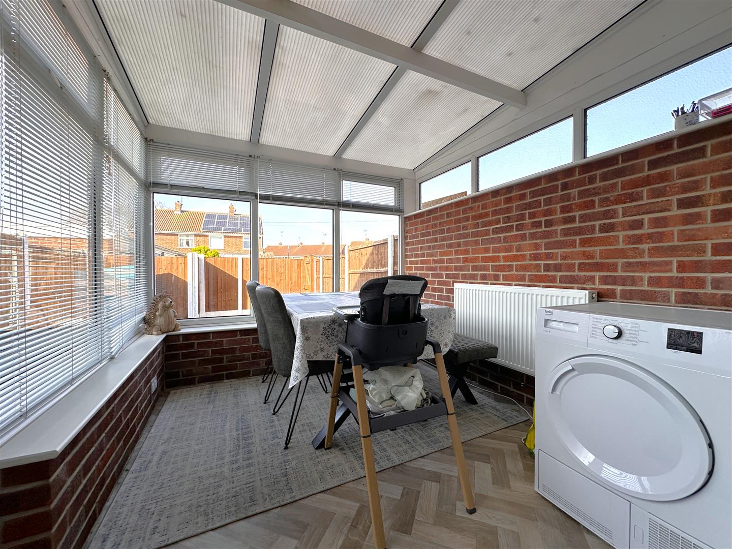 Of part brick and u PVC construction, with a sloped poly-carbonate roof. Providing Herringbone-style vinyl flooring, a double panel radiator, power sockets, uPVC double glazed windows to both side and rear elevations. A uPVC double glazed left sided personal door opens out to the low-maintenance garden.