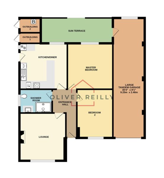 LARGE TANDEM GARAGE: 9.25m x 2.46m (30'4 x 8'1)