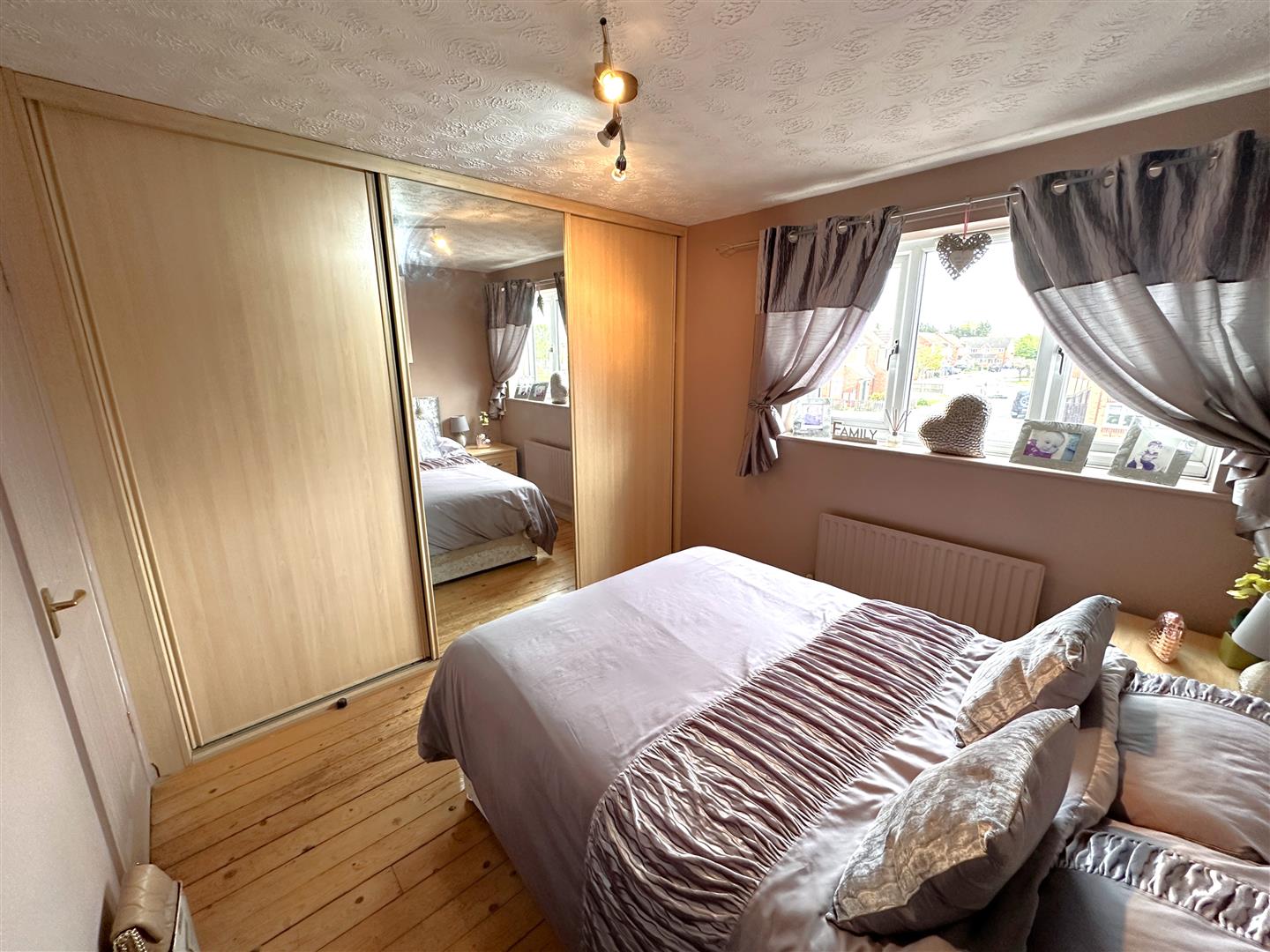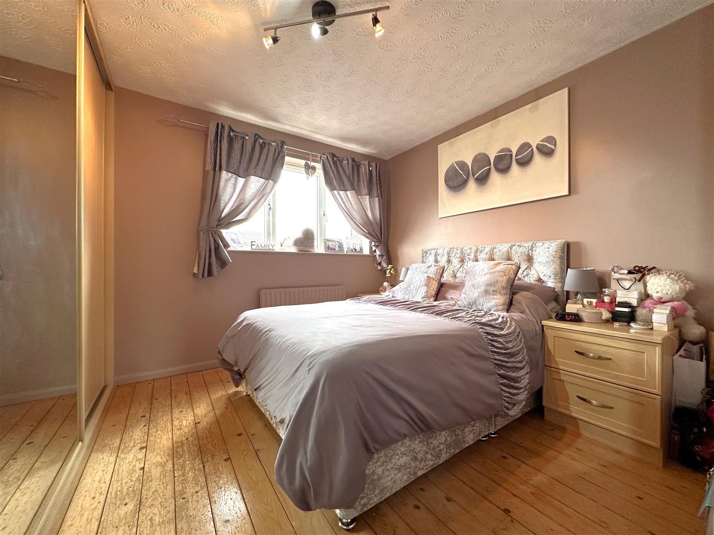 The first floor landing hosts a STYLISH CONTEMPORARY SHOWER ROOM and THREE BEDROOMS. The master bedroom is enhanced by EXTENSIVE FITTED WARDROBES!