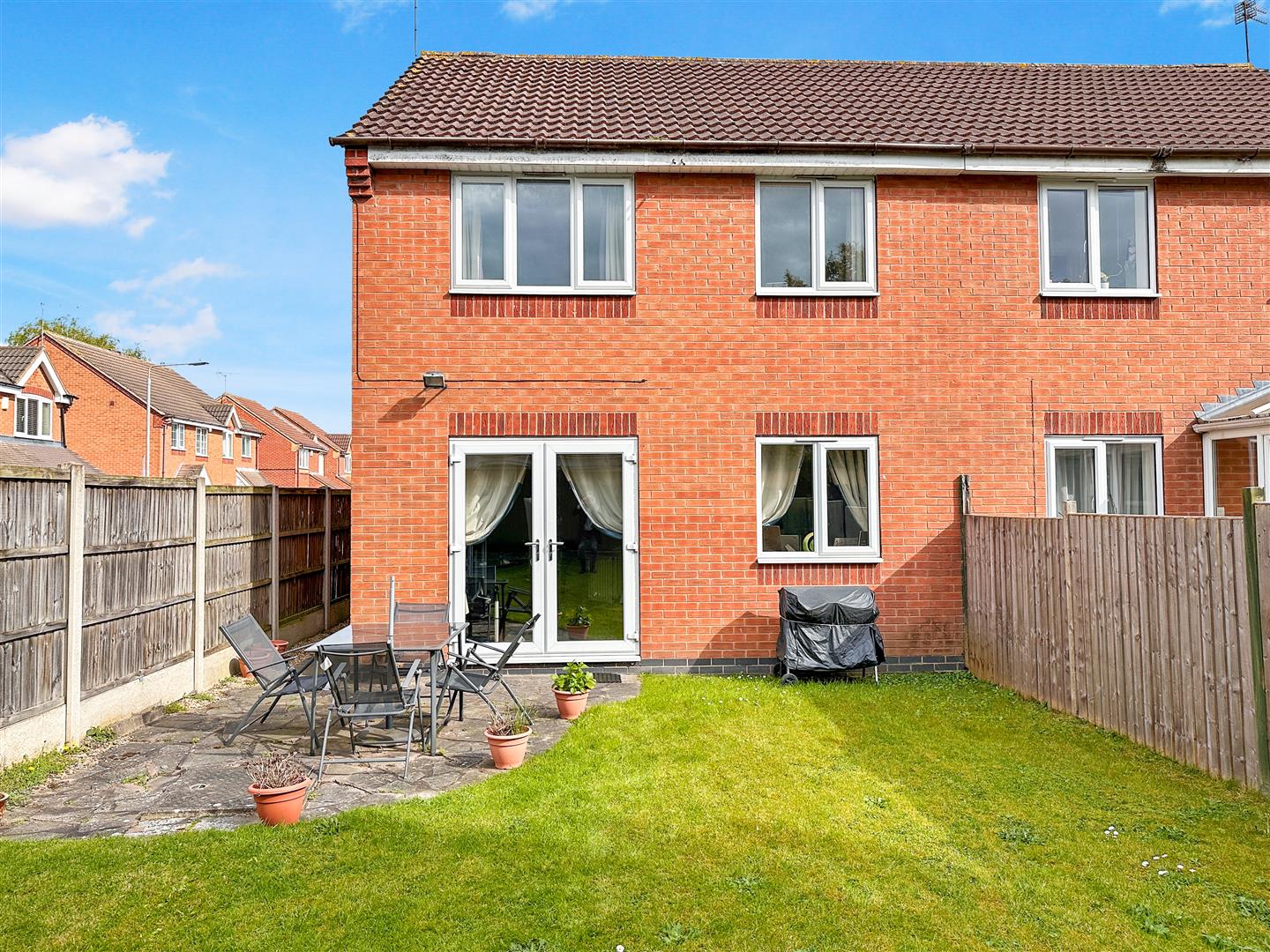 This well-maintained modern home is positioned in a quiet yet convenient cu-de-sac, on the outskirts of Newark Town Centre. The front aspect provides dropped kerb vehicular access onto a tarmac driveway, with access into the integral single garage. There is an additional paved off-street parking space, adjacent to the tarmac drive. Ensuing side-by-side parking. A paved pathway with gravelled borders leads to the sloped tiled roof entrance porch and front door. The right side aspect has an outside tap and secure wooden personal gate, opening into the WELL-APPOINTED REAR GARDEN. Predominantly laid to lawn, with a crazy-paved seating area. Directly accessed via the uPVC double glazed French doors in the lounge/diner. There is provision for a garden shed. There is an external security light, fully fenced side and rear boundaries.