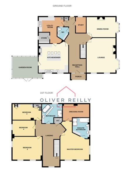 The huge first floor landing hosts a STUNNING FOUR-PIECE FAMILY BATHROOM and FOUR DOUBLE BEDROOMS. The copious DUAL-ASPECT master bedroom is enhanced by a large dressing room and a LAVISH FOUR-PIECE EN-SUITE.
