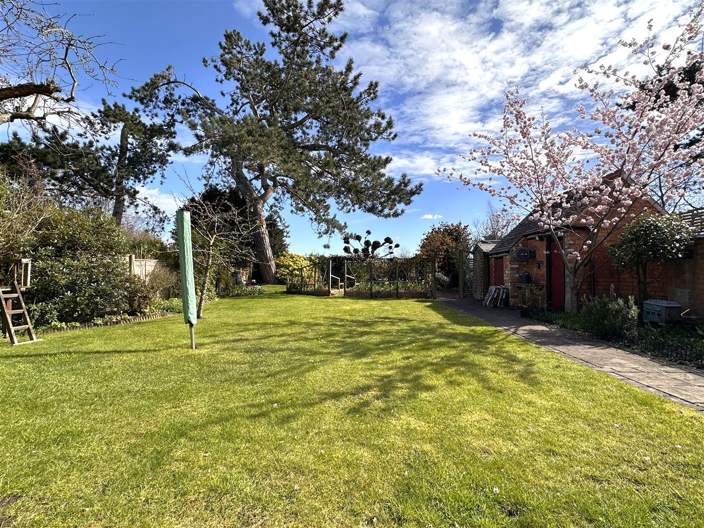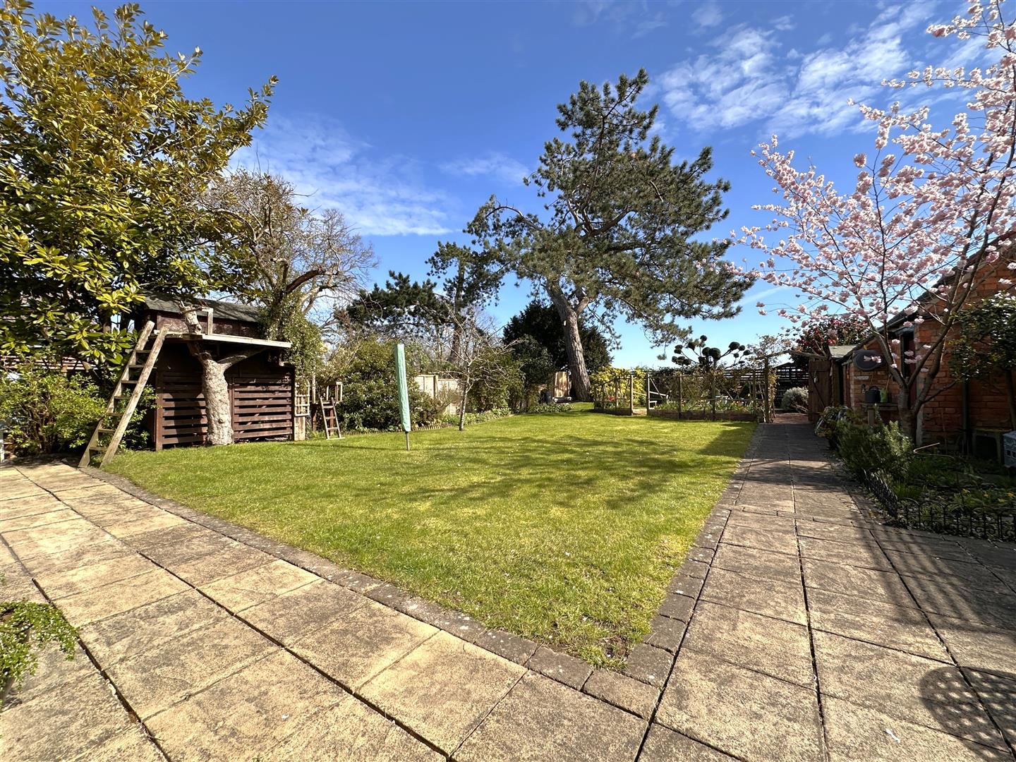 A secure right sided personal gate leads down to the BEAUTIFUL & WELL-APPOINTED SOUTH-EAST FACING REAR GARDEN. Promising a marvellous degree of tranquility. Predominantly laid to lawn. Showcasing an abundance of personality, with a vast array of planted borders, a range of mature bushes and trees, a brick outbuilding and attached W.C. There are two secluded paved seating areas. Both accessed via uPVC double glazed French doors in the family room and dining room. A further pave seating area, hidden at the bottom of the garden. An outside tap, two external wall lights, provision for a garden shed and tree house. Fenced left and rear boundaries and a part walled/ fenced right side boundary. Maintaining a high-degree of privacy all year round.