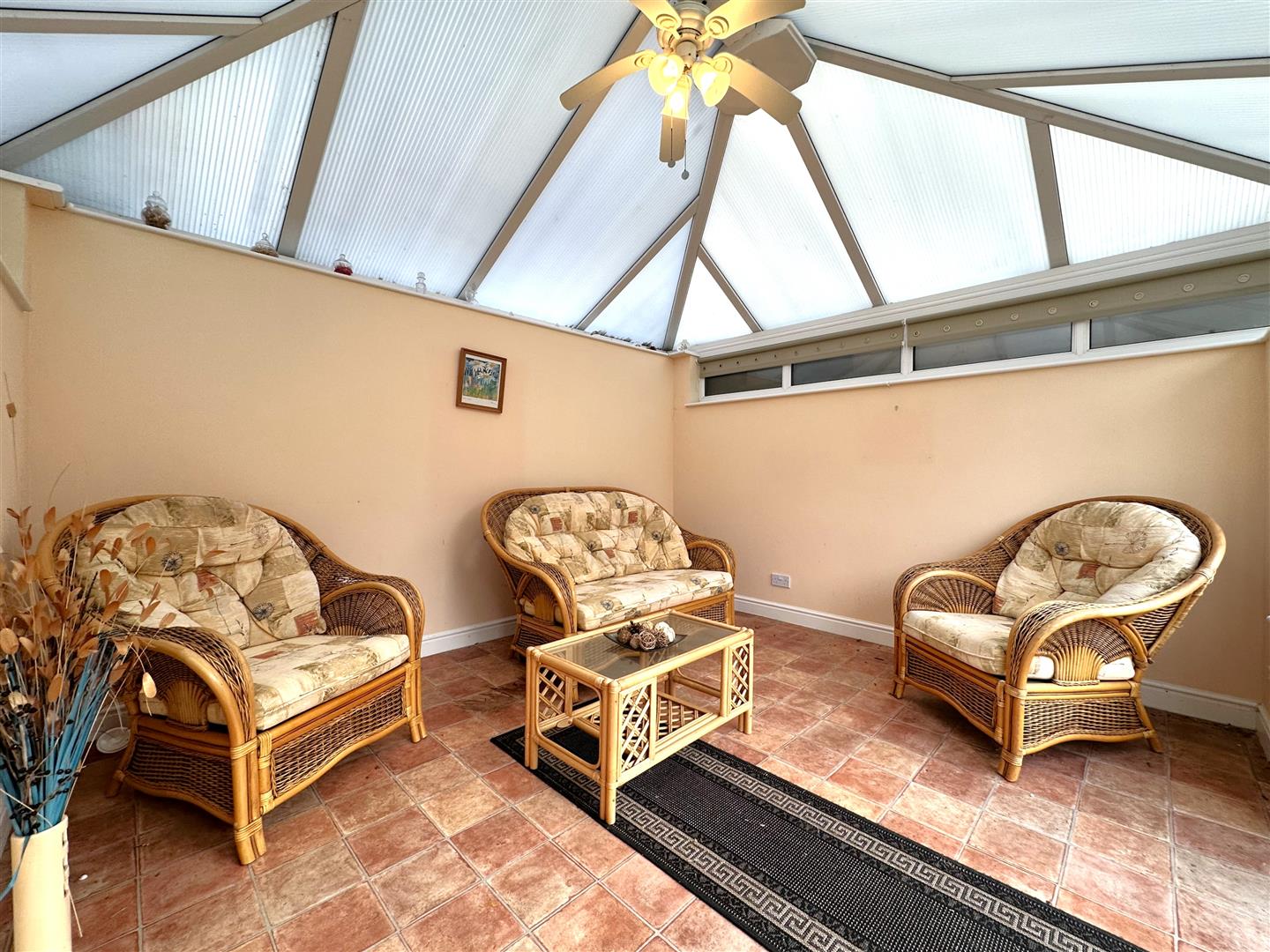 Of part brick and uPVC construction. Accessed via uPVC double glazed French doors. Providing a pitched poly-carbonate roof, with a ceiling light fitting with fan. With tile-effect vinyl flooring, power and lighting, uPVC double glazed windows to the left and right side elevations and uPVC double glazed windows to the front elevation, all with fitted blinds.