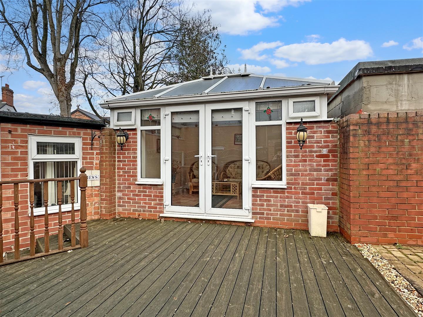 The front aspect provides a part walled and wrought iron fenced enclosed frontage, with a paved pathway leading to the front entrance door, accessed via a low-level wrought iron gate. The right side elevation hosts a block paved driveway with a large carport, double garage and a wall mounted external light. A wrought-iron gate at the carport opens into the fully enclosed rear garden. Hard landscaped, with extensive block paving and partial gravelled borders. Small artificial lawn with a paved pathway down to the detached hobbies room and external store. There are steps onto a decked seating area, which in-turn leads into the detached conservatory. There is a raised block paved seating area. An outside tap, externa security light and a lovely Victorian lamppost. Part walled and fenced side/ rear boundaries.