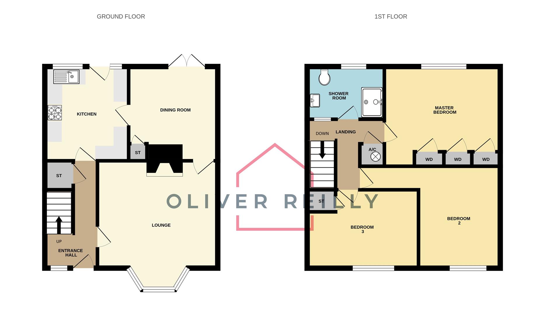 The first floor hosts THREE DOUBLE BEDROOMS and a modern shower room.
