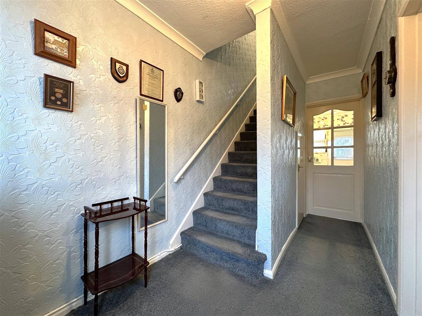 This spacious family home is situated close to the Town Centre, in a popular residential area. The front aspect is greeted with a low-level wrought-iron gate, onto a paved pathway leading to the front entrance door, with storm canopy above. The well-tended front garden is laid to lawn. Hosting complementary planted border, fenced front and side boundaries, There is excellent scope for the frontage to be utilised into a driveway. Subject to a dropped kerb being approved.