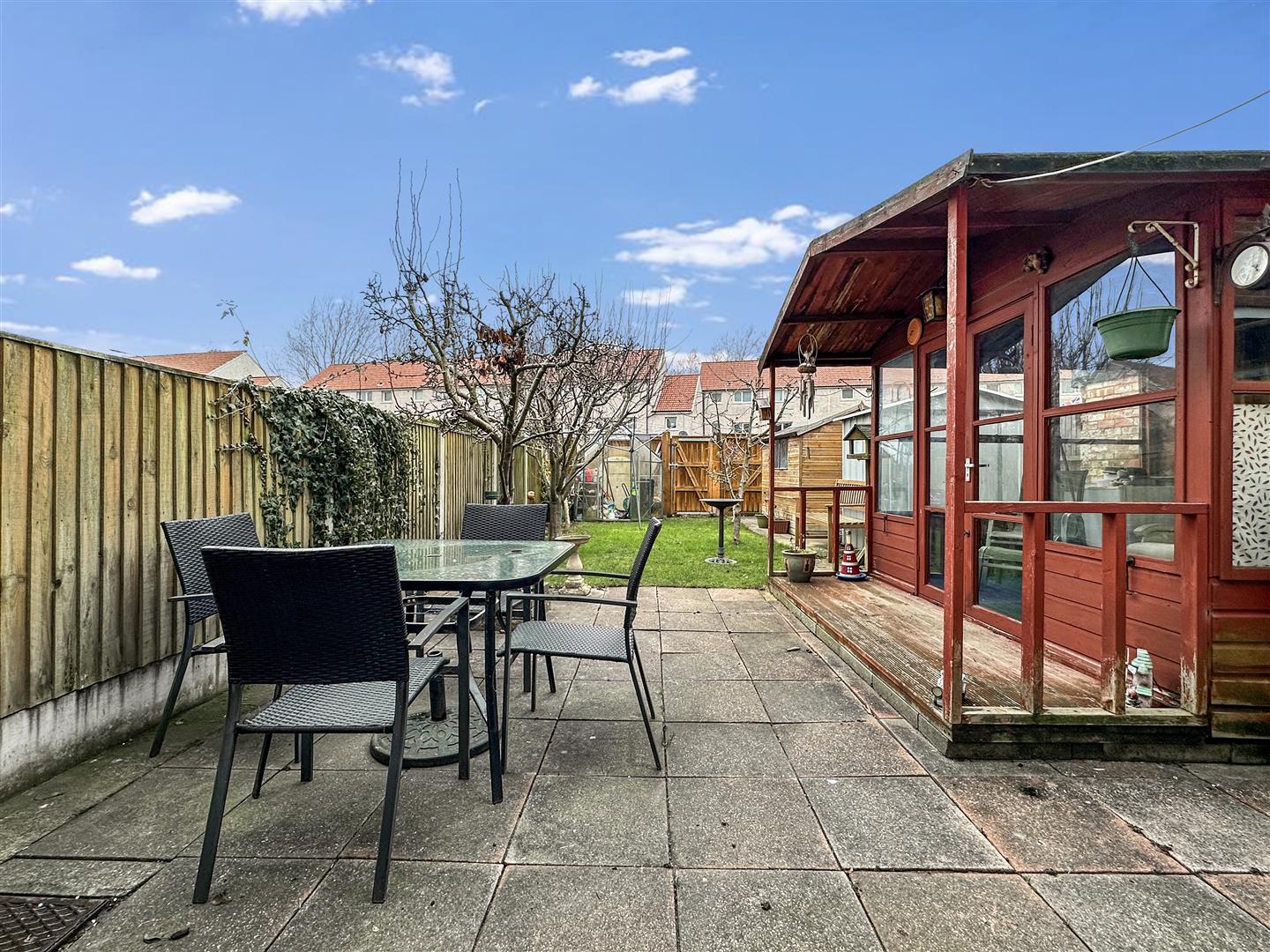 The generous rear garden is predominantly laid to lawn, with a variety of mature trees, a large paved seating area, directly accessed from the uPVC double glazed French doors in the dining room. Access into a large detached summer house, a metal storage shed and additional garden shed. There is an external security light, fenced side/ rear boundaries and a wooden rear personal gate. There is a DRIVEWAY TO THE REAR of the property. Accessed via St.Mary's Gardens with secure double gates.