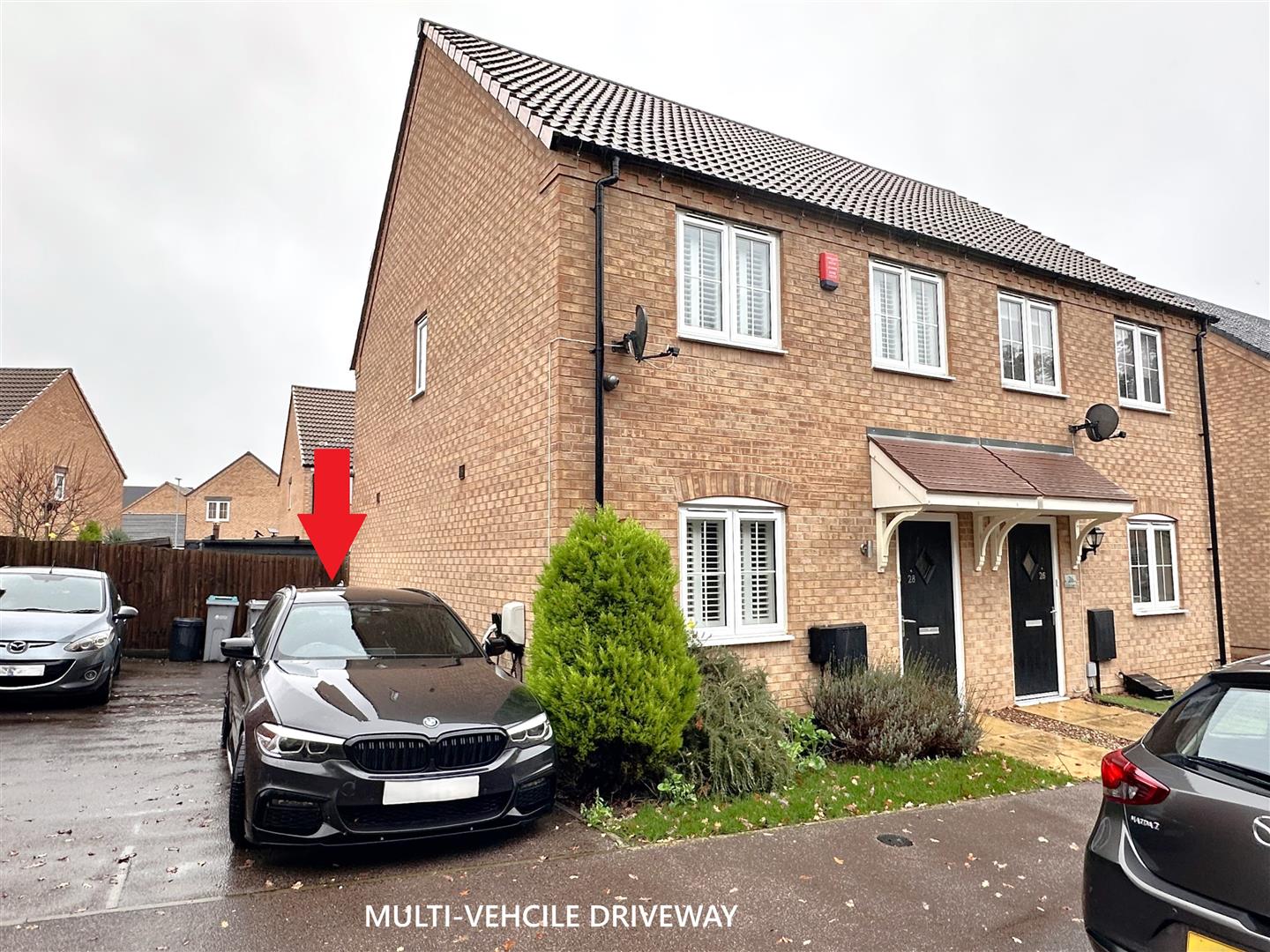 The property promotes a desirable position, in a popular and convenient modern-day residential area. Close to amenities and main road links. The front aspect promotes an unspoiled outlook over a local conservation park. There is a small paved pathway, leading to the front entrance door, with sloped roof storm canopy above, an external up/ down light and concealed gas/ electricity meters. The front garden is laid to lawn, with a small variety of bushes and shrubs. The left side aspect offers a MULTI-VEHICLE tarmac driveway. Ensuring tandem off-street parking. With access to an EV charging point and double external power socket. A secure timber side gate opens into the well-appointed and fully enclosed rear garden. Predominantly laid to lawn with a small range of plants and shrubs. There is a large paved seating/ entertainment area, with outside tap, directly accessed via the uPVC double glazed French doors in the OPEN-PLAN dining kitchen. There is a large garden shed. Equipped with power and an additional paved seating area, at the bottom of the garden. Perfect for the afternoon sunshine! There are fully fenced side and rear boundaries.
