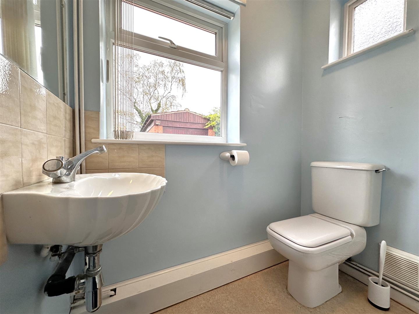 Of modern design, providing light vinyl flooring, a low-level W.C with side levered flush, a white ceramic wash hand basin with chrome mixer tap and partial wall tiled splash backs. Ceiling light fitting, double panel radiator. Access to the modern 'VAILLANT' gas combination boiler, installed within the last 12 months. Obscure hardwood single glazed window to the side elevation and a uPVC double glazed window to the rear elevation.