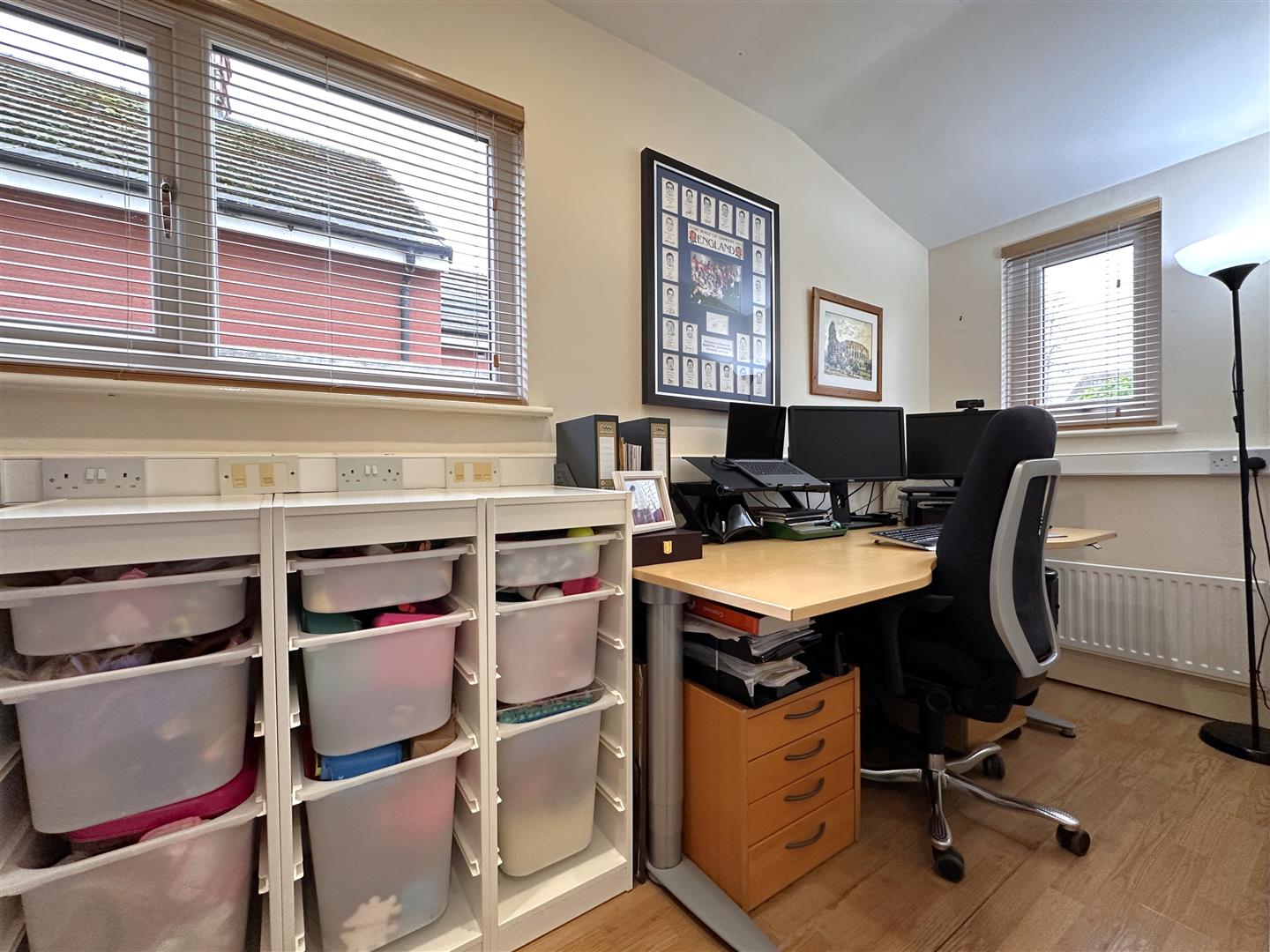The first floor provides a STYLISH CONTEMPORAY BATHROOM and three well-proportioned bedrooms, two of which are enhanced by extensive fitted wardrobes!