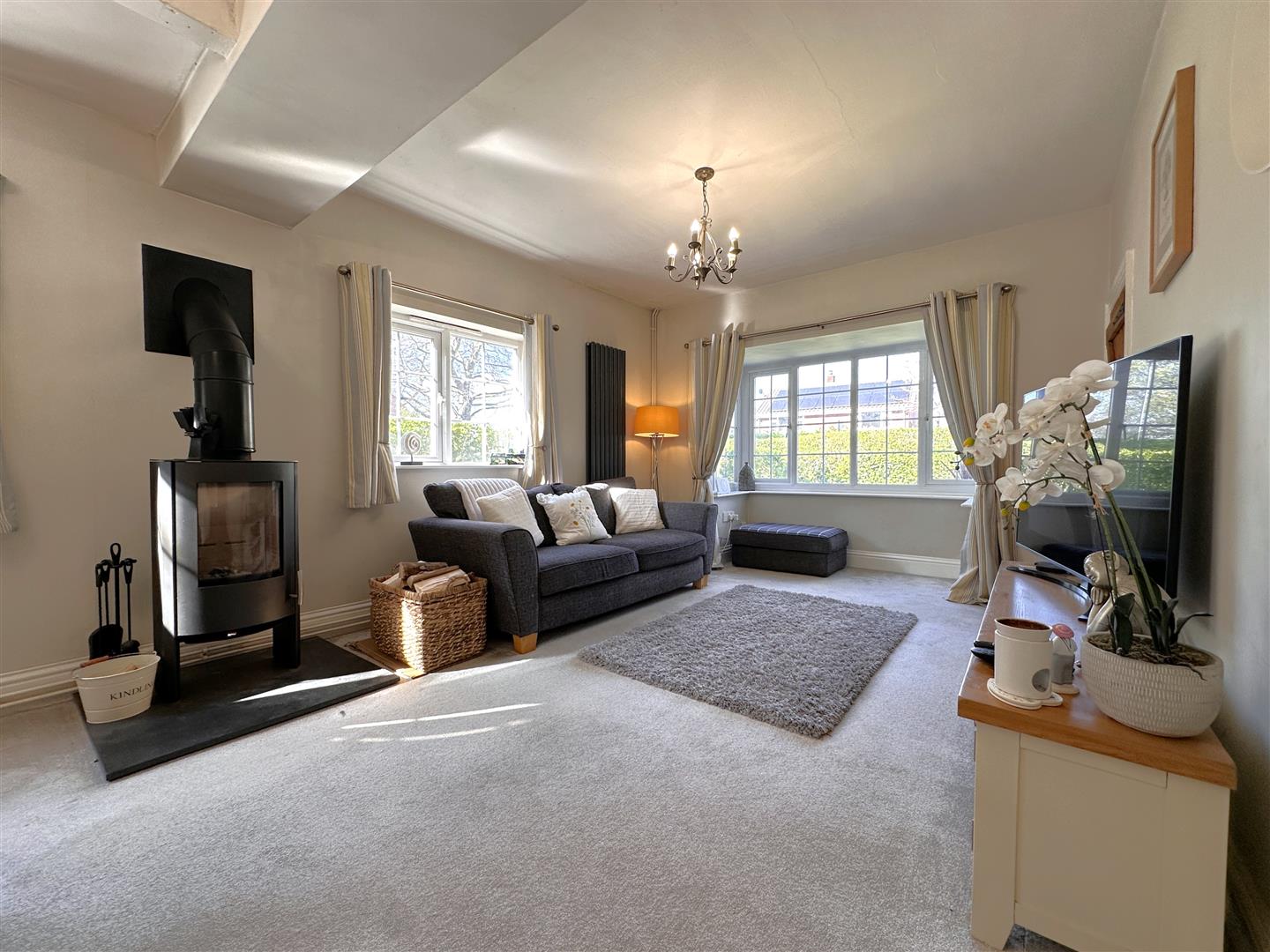 This SYMPATHETICALLY STUNNING home welcomes a great diversity of living space, perfect for family life. The copious internal accommodation comprises: Entrance porch, an inner reception hall, a 24FT DUAL-ASPECT LIVING ROOM with multi-fuel burner and bay window. A separate sitting with with attractive feature fireplace and inset log burner. An inner hallway, ground floor W.C, utility room and a dining room/ separate family room with double doors into a LARGE DUAL-ASPECT BREAKFAST KITCHEN with integrated appliances and French doors out to an Indian sandstone seating area.