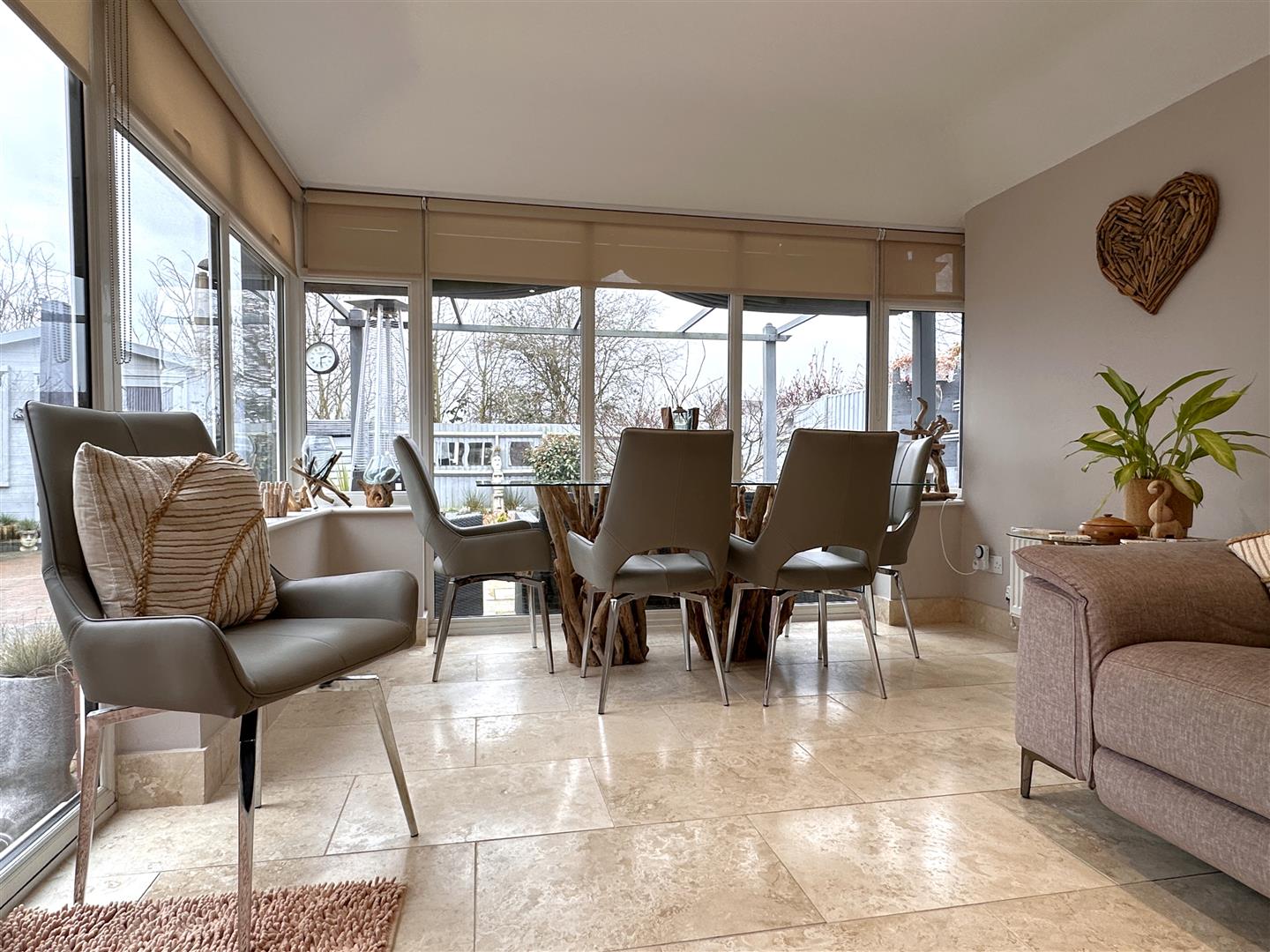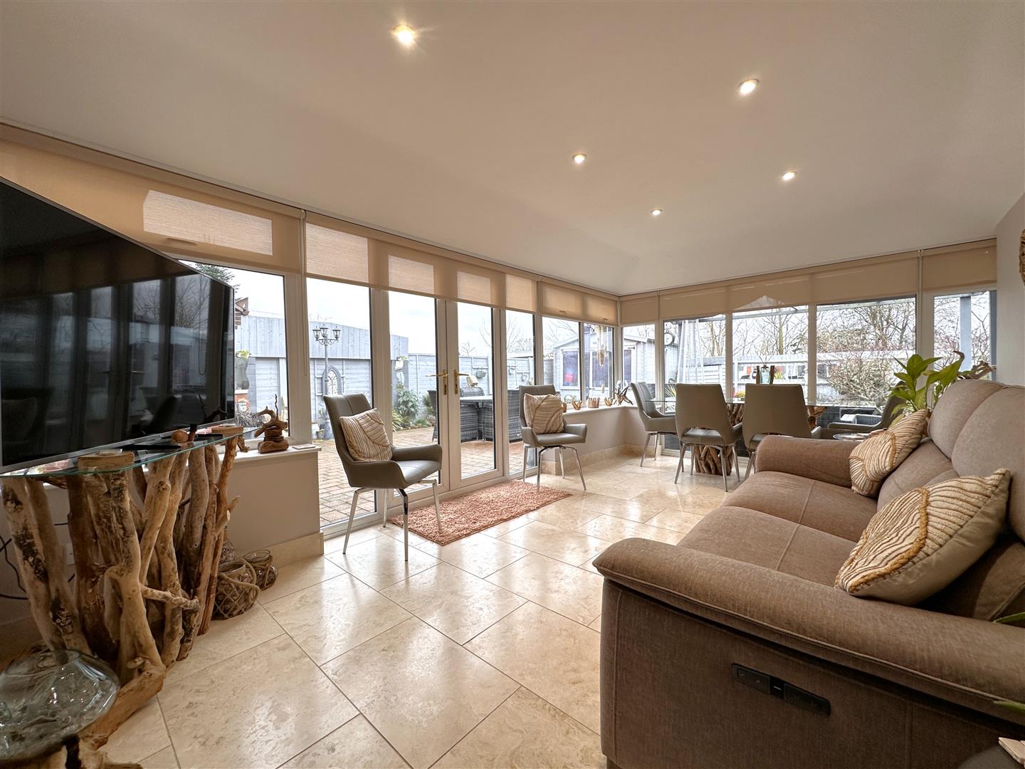 A SUPERB and extremely SPACIOUS multi-purpose reception room. Of part brick and uPVC construction, with a solid pitched roof, with extensive insulation. uPVC double glazed ' Pilkington K Argon' (heat saving) windows to the side and rear elevations, with provision for high-quality bespoke vertical privacy blinds. Complementary ceramic tiled flooring, recessed ceiling spot-lights, two large double-panel radiators and air-conditioning. uPVC double glazed French doors open out onto an extensive block paved seating area, within the private rear garden.
