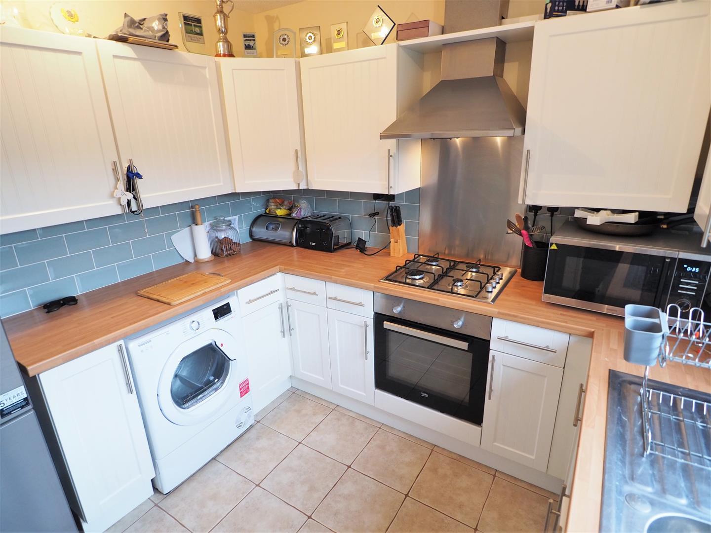 With tiled flooring. Providing a range of complimentary wall and base units with worksurfaces over and modern tiled splash backs. Integrated electric oven with four ring gas hob over and extractor fan above. Integrated dishwasher and provision for a freestanding fridge freezer and under counter washing machine. Access to a concealed wall mounted condensing boiler.