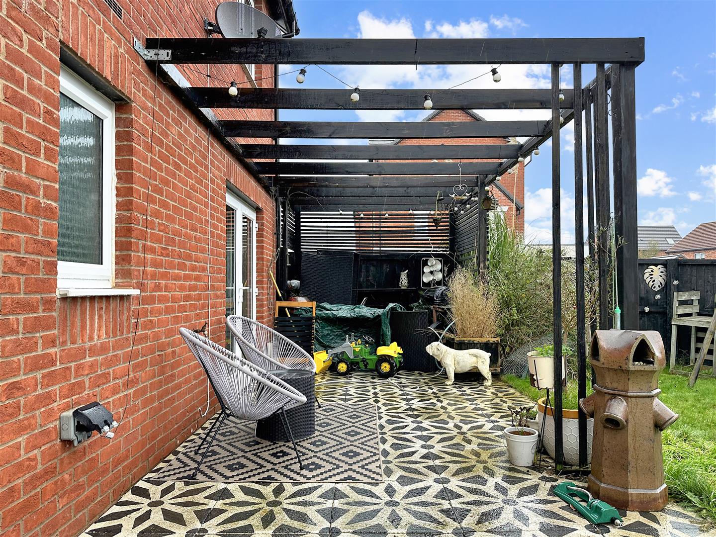Externally, the property occupies a WONDERFUL & WELL-APPOINTED PLOT. Enjoying a well-appointed yet low-maintenance rear garden, with a paved outdoor entertainment space, with timber-framed pergola. There is a private MULTI-VEHCILE driveway to the rear of the property, giving access into a DETACHED SINGLE GARAGE. (Vehicular access is behind the house, off Cardington Way).