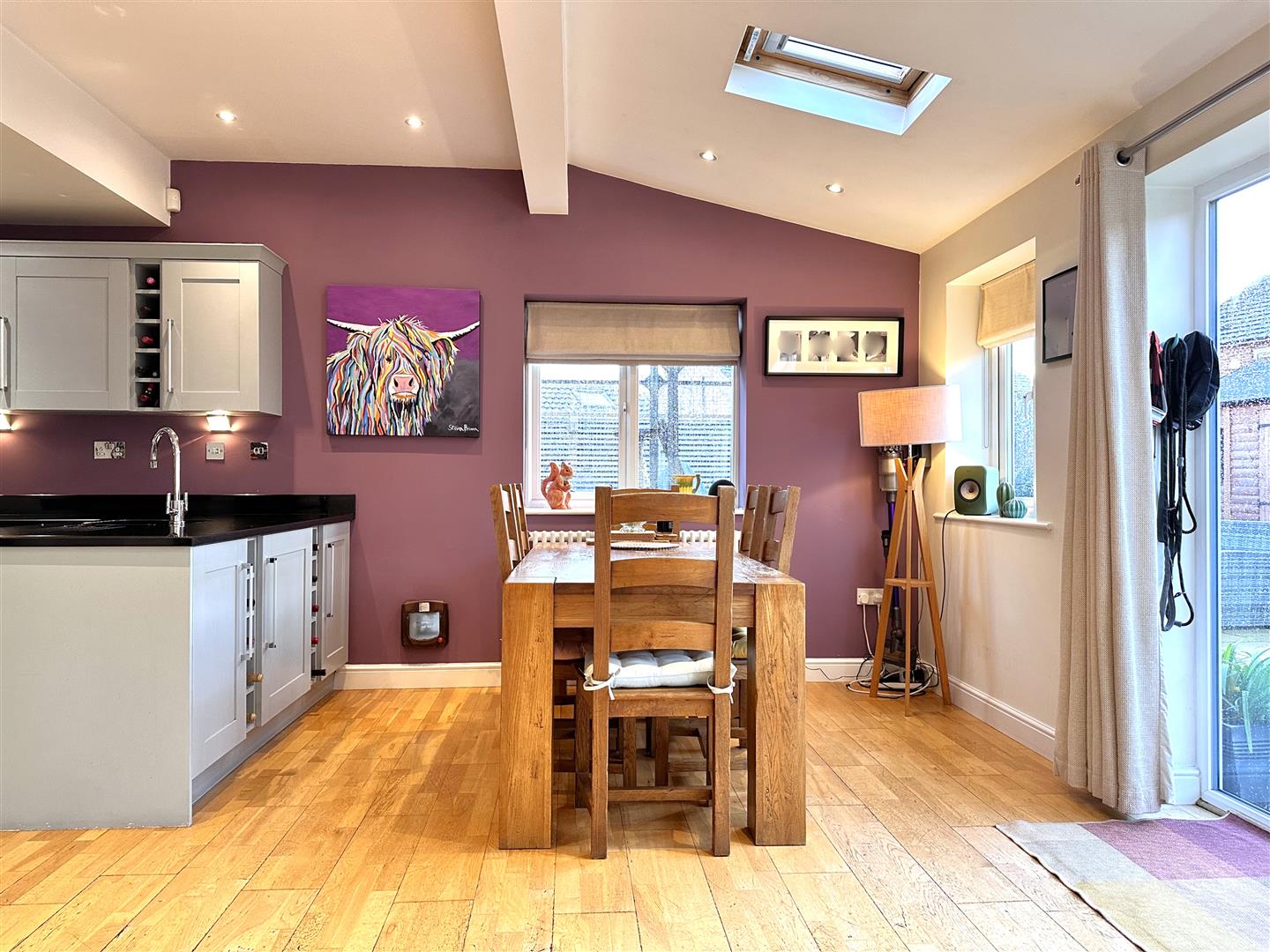 The gorgeous free-flowing internal layout comprises: Inviting reception hall, a ground floor W.C, large cloakroom, study, large lounge with feature fireplace and double doors through to a WONDERFUL OPEN-PLAN LIVING/ DINING SPACE. Hosting a range of Velux roof-lights and French doors out to the landscaped garden. The highly functional space flows through to a FABULOUS CONTEMPORARY KITCHEN. Hosting a range of integrated appliances and granite work-surfaces. This tremendous space truly is the hub of this beautiful home!