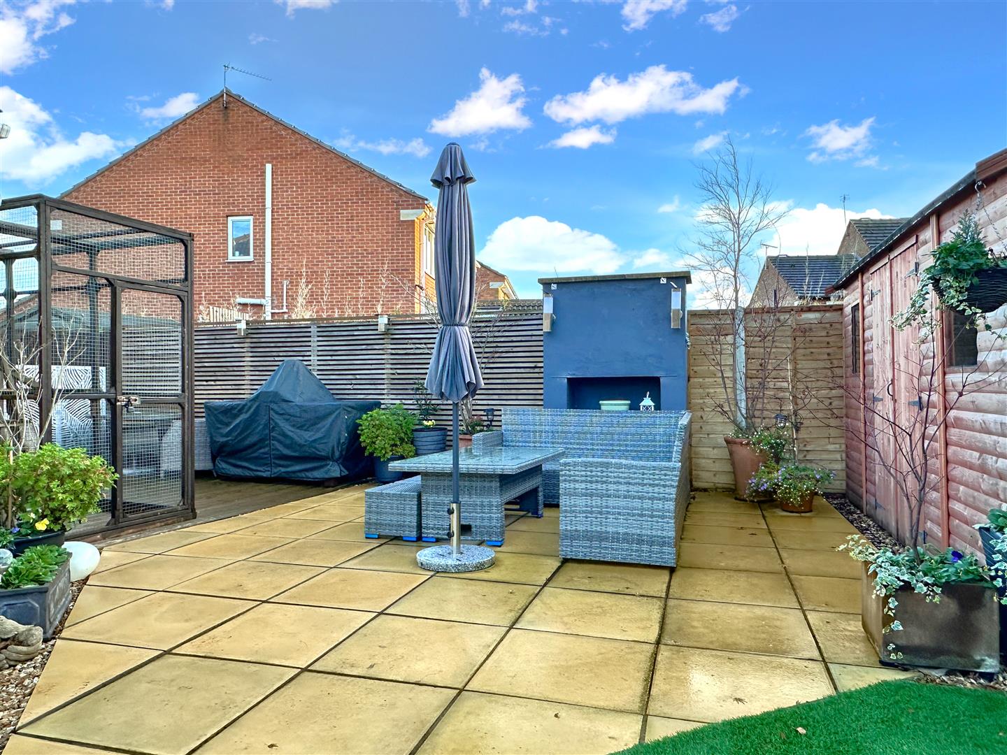 The front aspect is greeted with dropped kerb vehicular access onto a multi-vehicle tarmac driveway, with EV charger, side-by-side parking and access into the integral single garage. The well-tended front garden is laid to lawn. Enjoying a range of complementary planted borders. A small block paved pathway leads to the front entrance door, with external up/ down light and open storm canopy. A secure timber personal access gate to both the left and side right elevation both lead down to the BEAUTIFULLY LANDSCAPED REAR GARDEN. Predominantly laid to artificial lawn, with attractive, gravelled and planted borders. There is a large paved outdoor entertainment space with four external lights, BBQ area with external fireplace, a double external power socket, outside tap, a partial decked seating area and access into two sizeable timber garden sheds. The left side aspect remains equally landscaped and predominantly gravelled. There are fully fenced side and rear boundaries.