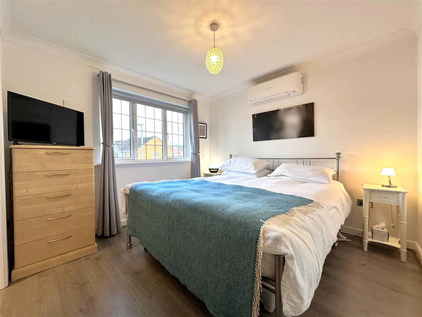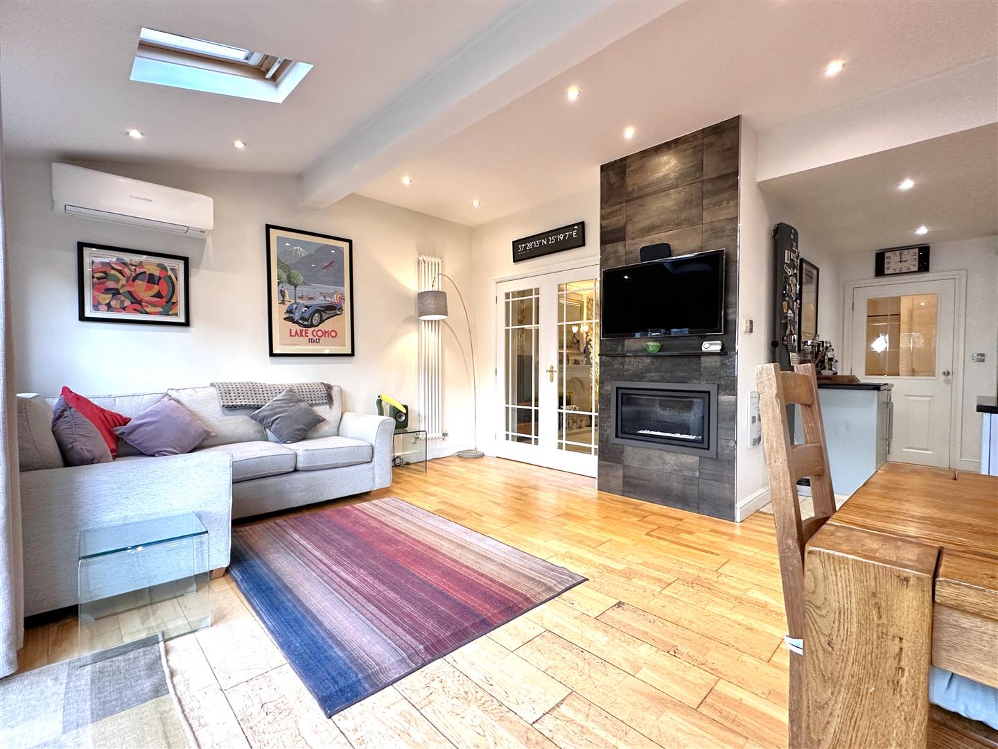 A magnificent, versatile, bright and airy multi-functional family-sized space. Hosting oak flooring, a complementary feature fireplace housing an inset 'GAZCO' gas (living flame) fire with floor to ceiling tiled chimney breast. There is air-conditioning, two large Velux roof-lights, two uPVC double glazed windows to the rear elevation and one to the left side elevation. uPVC double glazed French doors open out to the landscaped garden. Promising to be the perfect space for any growing family or for entertaining!