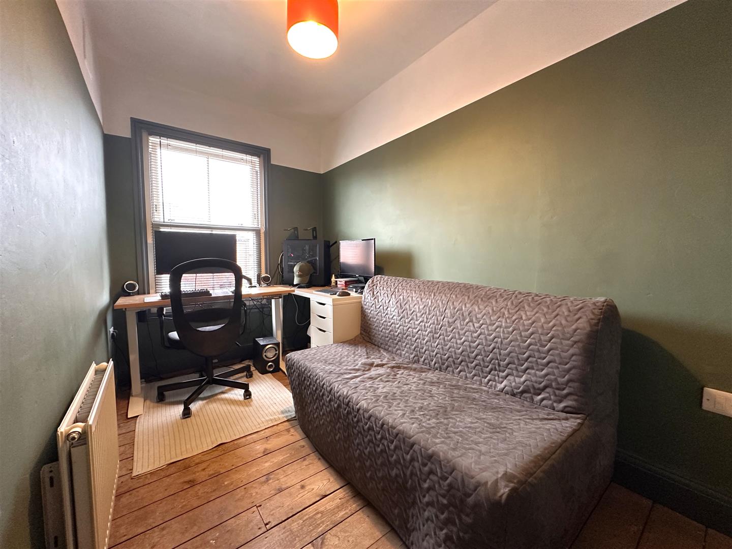 A generous space that hosts sufficient space for a suitable study area. Complementary original stained glass window to the side elevation. Loft hatch access point, with pull-down ladder and majority boarding for storage.