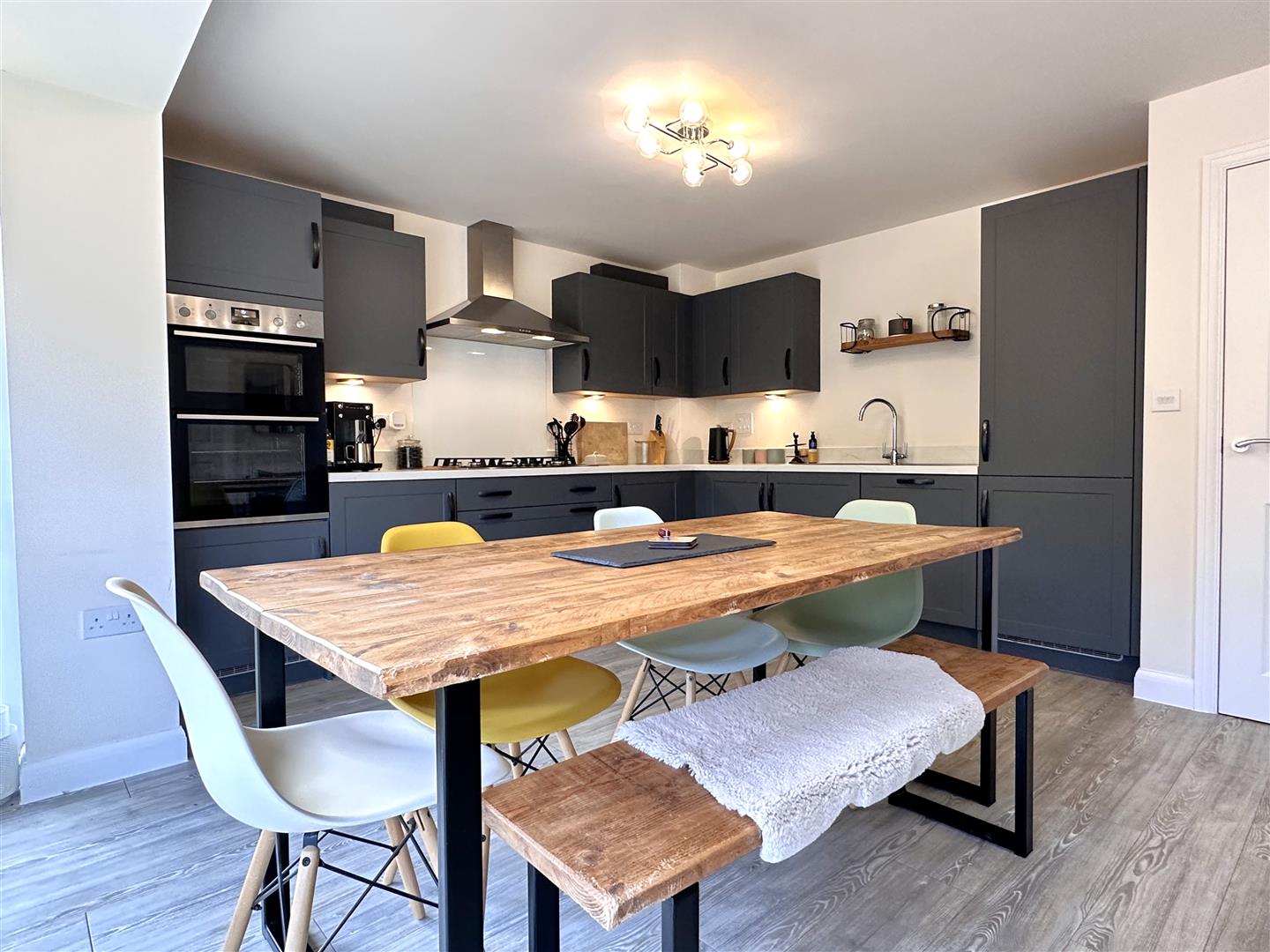 The PERFECT family-sized space! The expansive multi-functioning layout provides complementary wood-effect LVT flooring. The stylish and high-quality kitchen provides a vast range of fitted wall and base units with marble-effect roll-top work surfaces over and up-stands. Under counter wall lighting. Inset stainless steel sink with chrome mixer tap and drainer. Integrated medium height electric oven, separate five ring gas hob with glass splash back and stainless steel extractor hood above. Integrated fridge freezer and dishwasher. Provision for a water filter system. Three ceiling light fittings, two double panel radiators. Sufficient space for a large dining table and chairs. uPVC double glazed window to the rear elevation and a lovely walk in rear bayprovides uPVC double glazed windows to the side and rear elevation. uPVC double glazed French doors open onto the generous paved outdoor entertainment space. Internal access into the separate utility room. Max measurements provided.