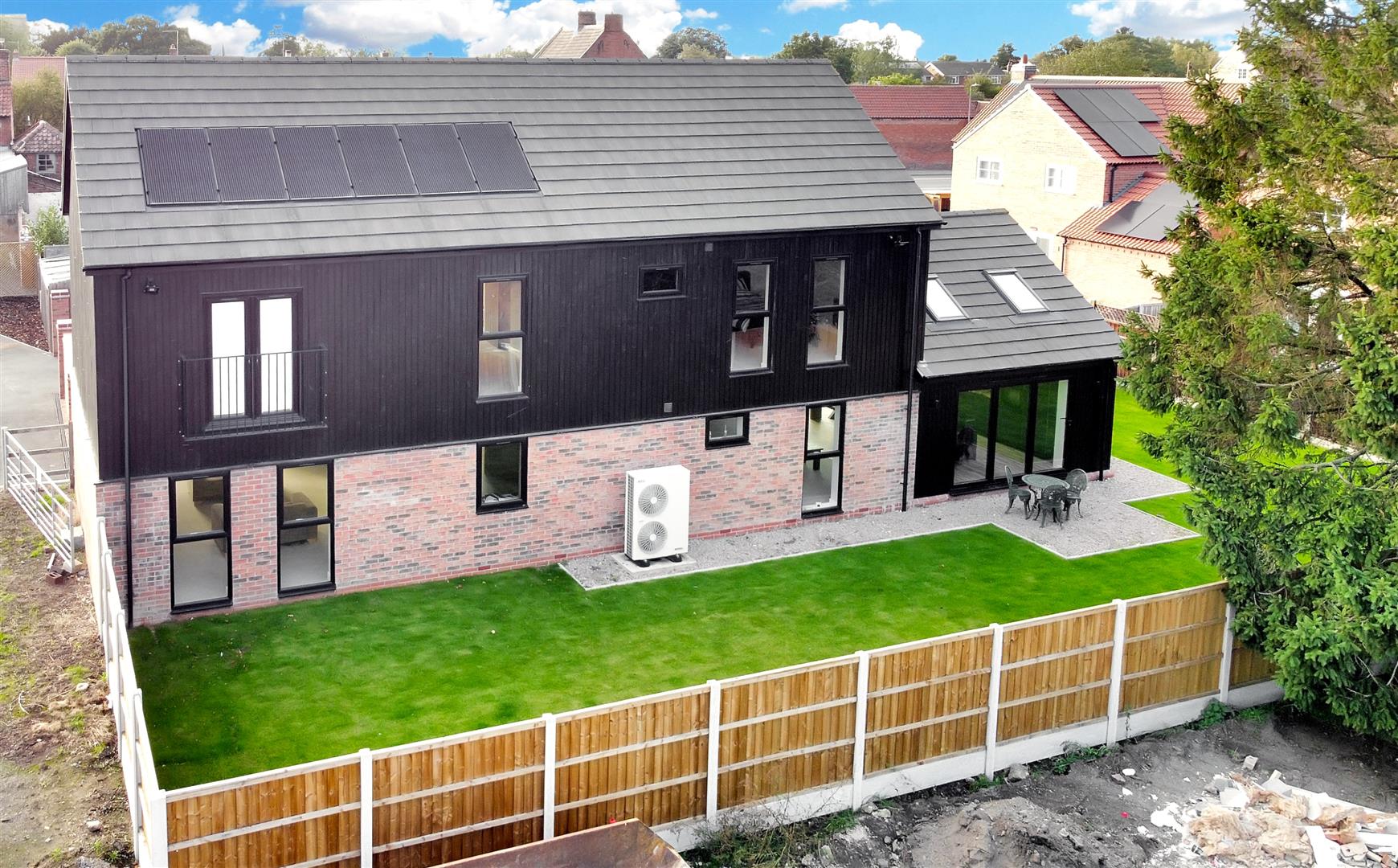Mains water, drainage, and electricity are all connected. The property also provides air source heating with under-floor heating servicing the ground floor, panoramic CCTV, 12 owned 4kw solar panels (6 to the front and rear) and aluminium windows/ doors with double glazing throughout. There is currently 7 years remaining on the original new build warranty.