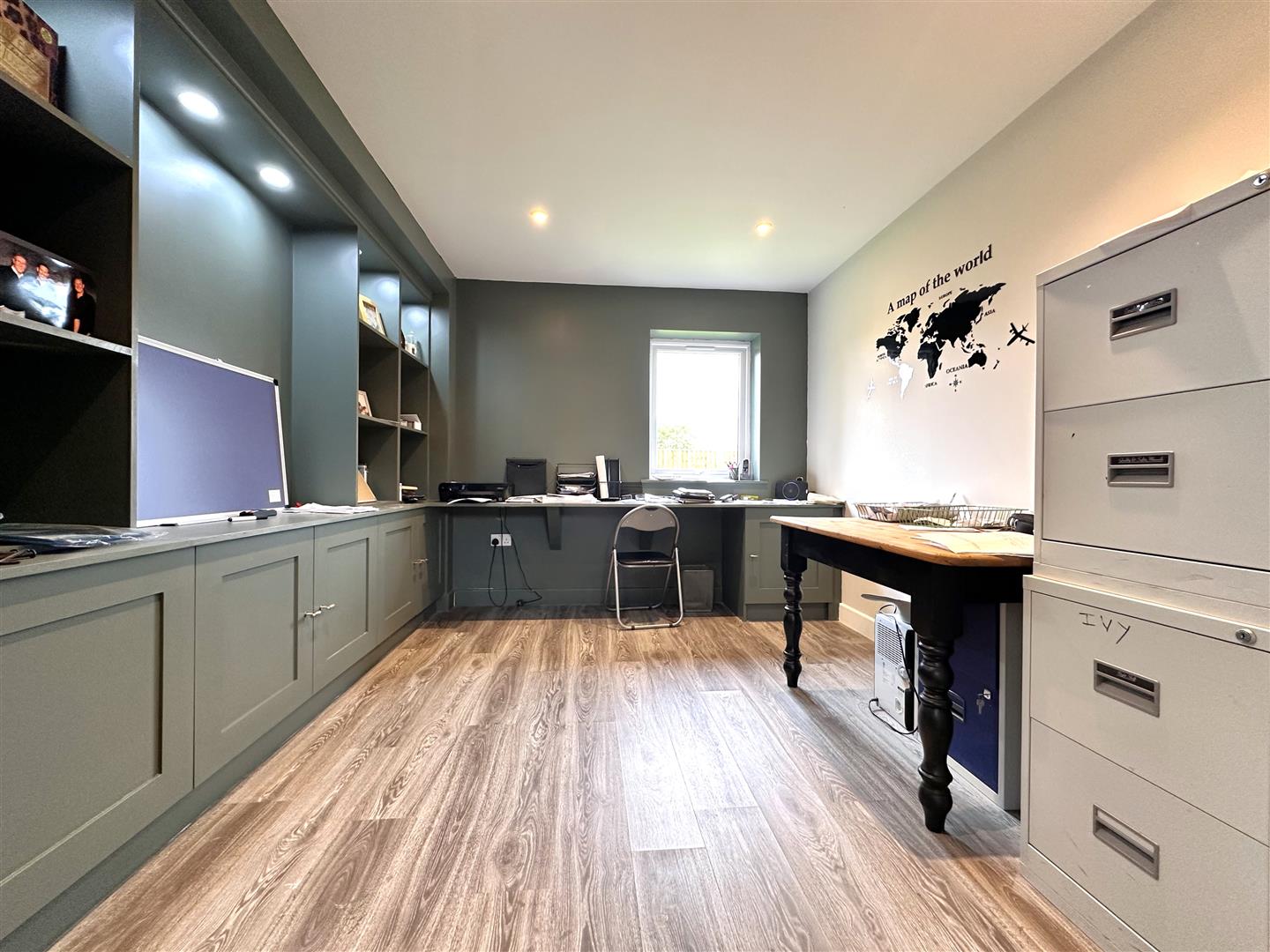 From the moment you step inside the copious residence, you'll be captivated by the bright, airy and elegant accommodation, comprising: Inviting reception hall with oak staircase, a GENEROUS DUAL-ASPECT LIVING ROOM, a large study with an array of fitted storage cupboards and work surfaces. An inner hallway with plant room and ground floor W.C. The MAGNIFICENT OPEN-PLAN LIVING/ DINING KITCHEN truly is HEART OF THE HOME! Enhanced by a full range of integrated appliances, instant hot water tap, dining island, two sets of BI-FOLD DOORS and an eye-catching vaulted ceiling. Flooding the room with natural light!