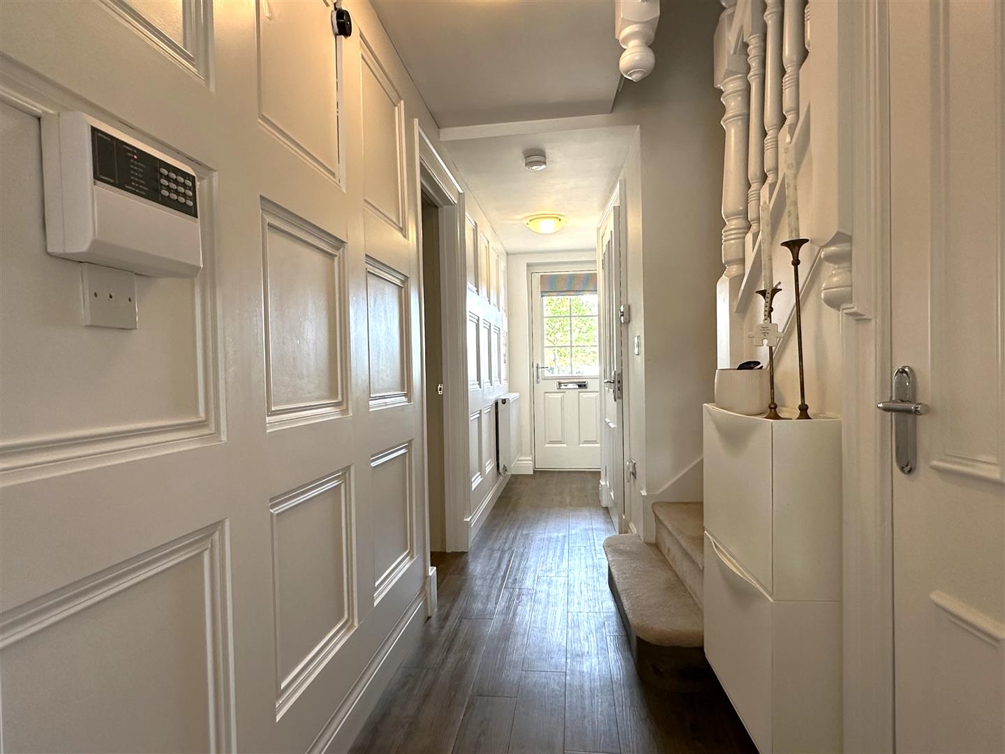 An inviting entrance space, accessed via a complementary composite front door. Hosting bespoke and detailed wall panelling. Access into the utility room, dining kitchen and ground floor W.C. Max measurements provided.