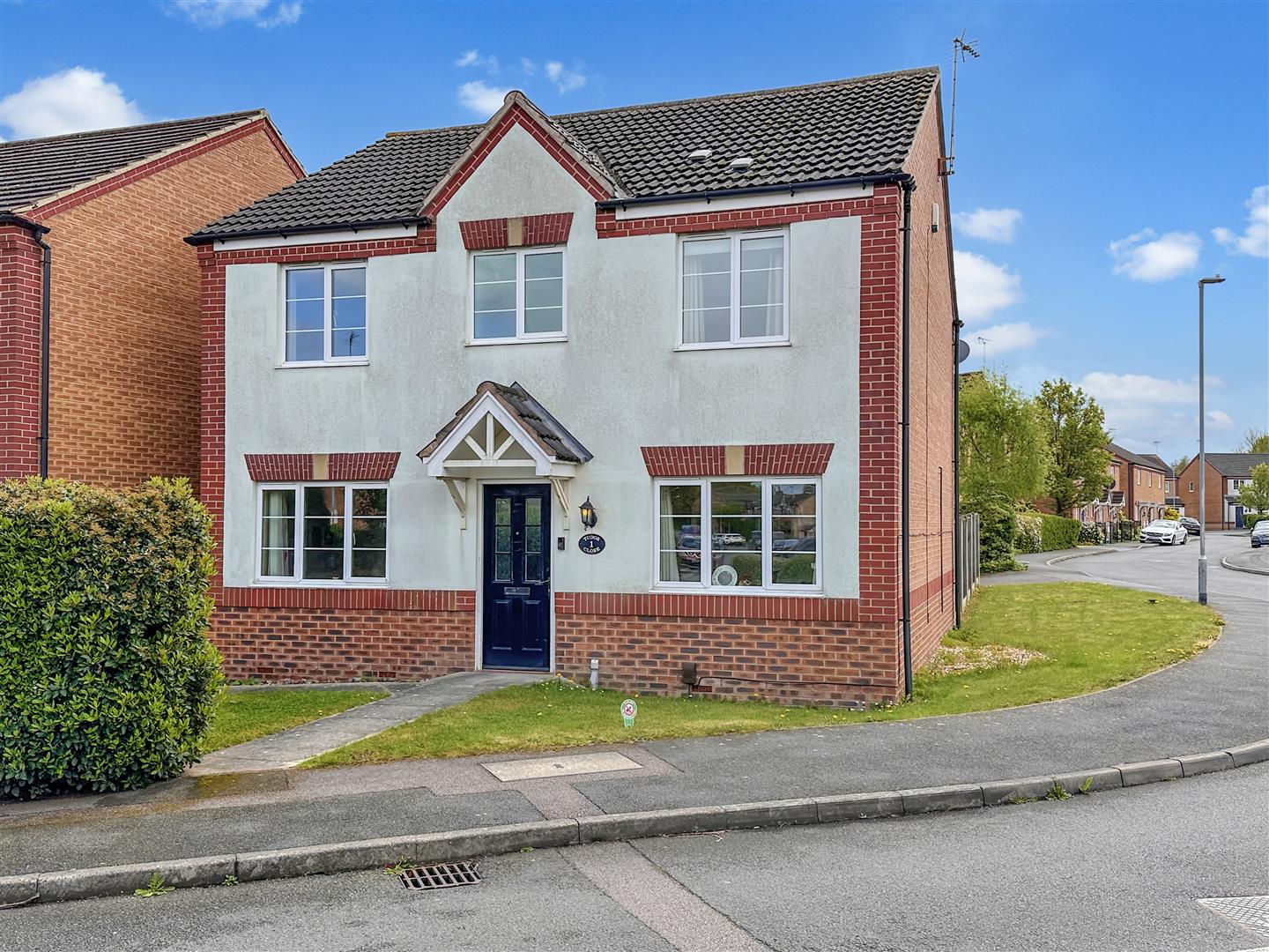 This eye-catching modern detached home is pleasantly positioned in a desirable and well-connected central location, on the edge of the Town Centre. The property occupies an enviable corner plot. The front aspect provides a paved pathway leading to the entrance door, with external wall light and pitched roof storm canopy. The front garden is predominantly laid to lawn with a hedged front boundary. The left side elevation is also laid to lawn and follows round behind the house, with dropped kerb vehicular access onto a MULTI-VEHICLE TARMAC DRIVEWAY. Giving access into a DETACHED DOUBLE GARAGE. A secure timber rear personal gate opens into the WELL-APPOINTED and FULLY ENCLOSED rear garden. Hosting a great space that's suitable for the whole family to enjoy! Predominantly laid to lawn, with two paved seating areas and a winding pathway that leads to the side (utility) external door. There are part hedged planted borders and slate shingled hard-standing. An outside tap, fully fenced side and rear boundaries.