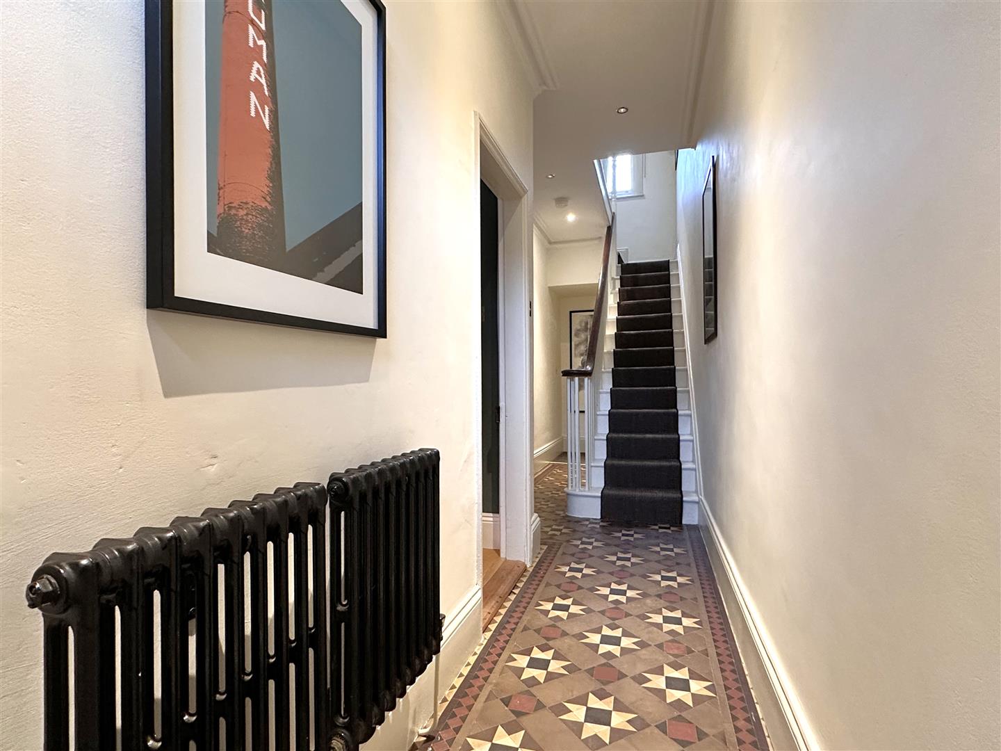 The first floor enjoys a generous hallway, with retained Minton tiled flooring. A LOVELY BAY-FRONTED LOUNGE with Italian Marble fireplace. A separate reception room/ fourth bedroom and a STUNNING MODERN SHOWER ROOM.